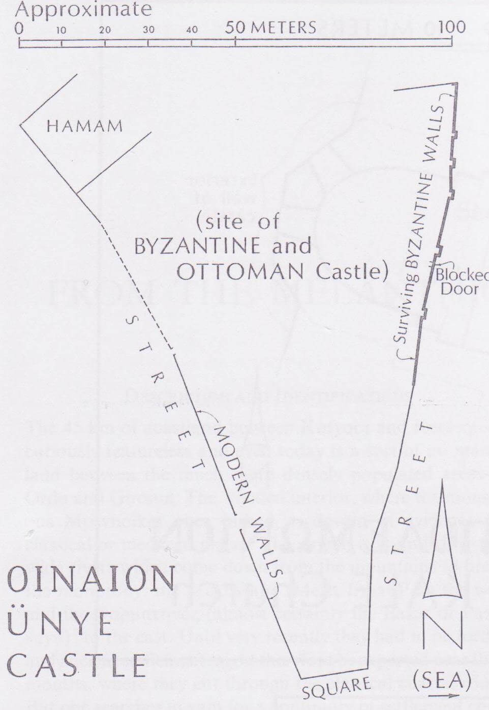 Η σύγχρονη παράκτια πόλη Ünye, η Οἴνόη ή αλλιώς το Βυζαντινό Οἴναιον φαίνεται πως ήκμασε κυρίως κατά τα βυζαντινά χρόνια κι έπειτα, και τα μόνα αρχαιολογικά της κατάλοιπα, που ανήκουν στο βόρειο παράκτιο τείχος της, χρονολογούνται στη βυζαντινή εποχή. Νοτιοδυτικά της πόλης τοποθετείται οχυρό κτισμένο στην κορυφή ενός βραχώδους λόφου. Το φυσικό αυτό οχυρό έχει ενισχυθεί με τείχος το οποίο διέθετε περισσότερους από τρεις περιβόλους, ενώ στο εσωτερικό του έχουν εντοπιστεί κατασκευές λαξευμένες στον βράχο, όπως κλίμακες και σήραγγες για την προμήθεια νερού. Εξωτερικά του οχυρού υπάρχει λαξευμένος τάφος ελληνιστικής εποχής. Τα σωζόμενα αρχιτεκτονικά κατάλοιπα, κιονοστοιχία, επιστήλιο και αέτωμα, τον κατατάσσουν στους λαξευτούς τάφους του Πόντου. Την πρόσοψη του μνημείου διακοσμούσε ένας αετός λαξευμένος στον βράχο στη θέση ακρωτηρίου.